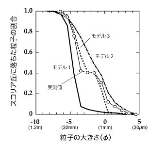 次に、噴煙にのって飛ばされやすいこうした細かい粒子が、どうやってスコリア丘を作ったのかを解明するため、野外調査の結果得られた粒子の分配係数を説明できる理論モデルを作ることにしました。